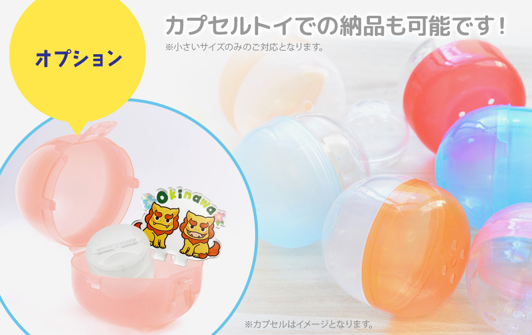 オプションでカプセルトイ(ガチャガチャ)用カプセルに封入しての納品にも対応できます。