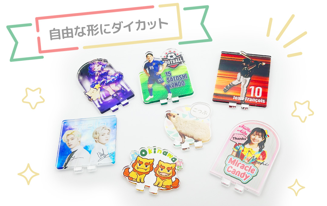 アクリルスタンド部分はダイカット加工よりオリジナルの形状で制作できます