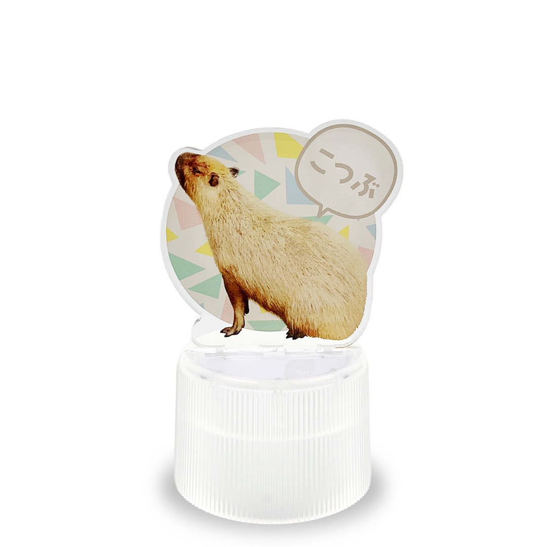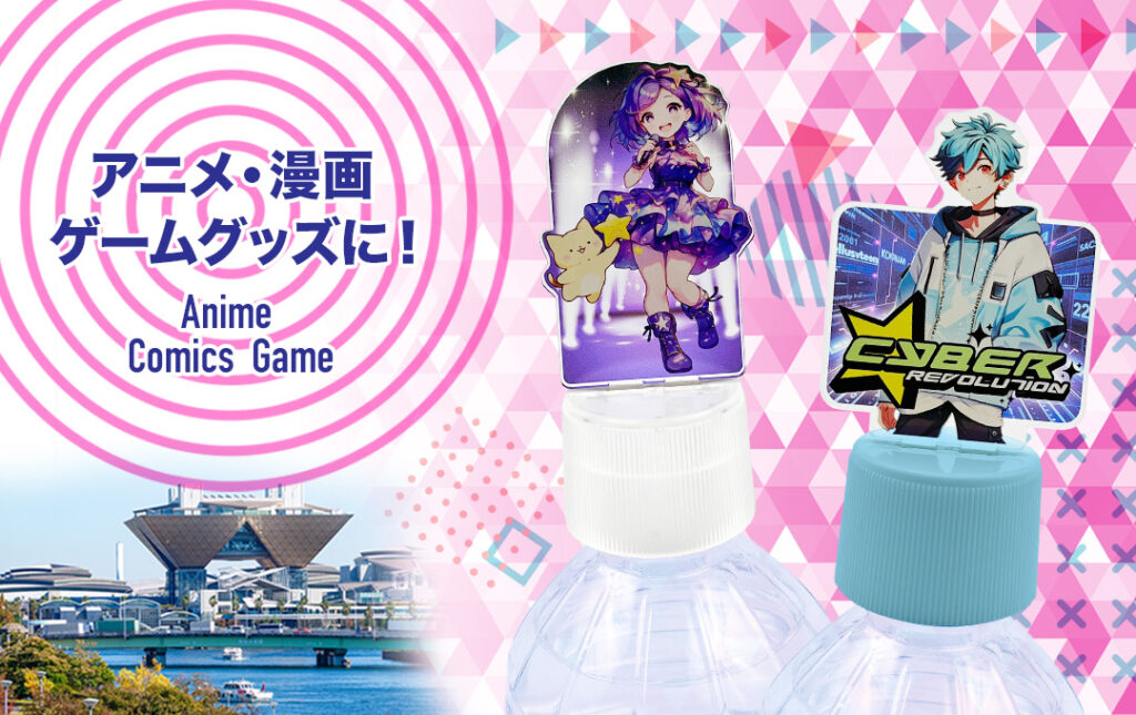 ペットボトルに取り付ける新しい形のアクリルスタンド「ボトルキャップアクスタ」をお客様のオリジナルデザインで制作いたします。