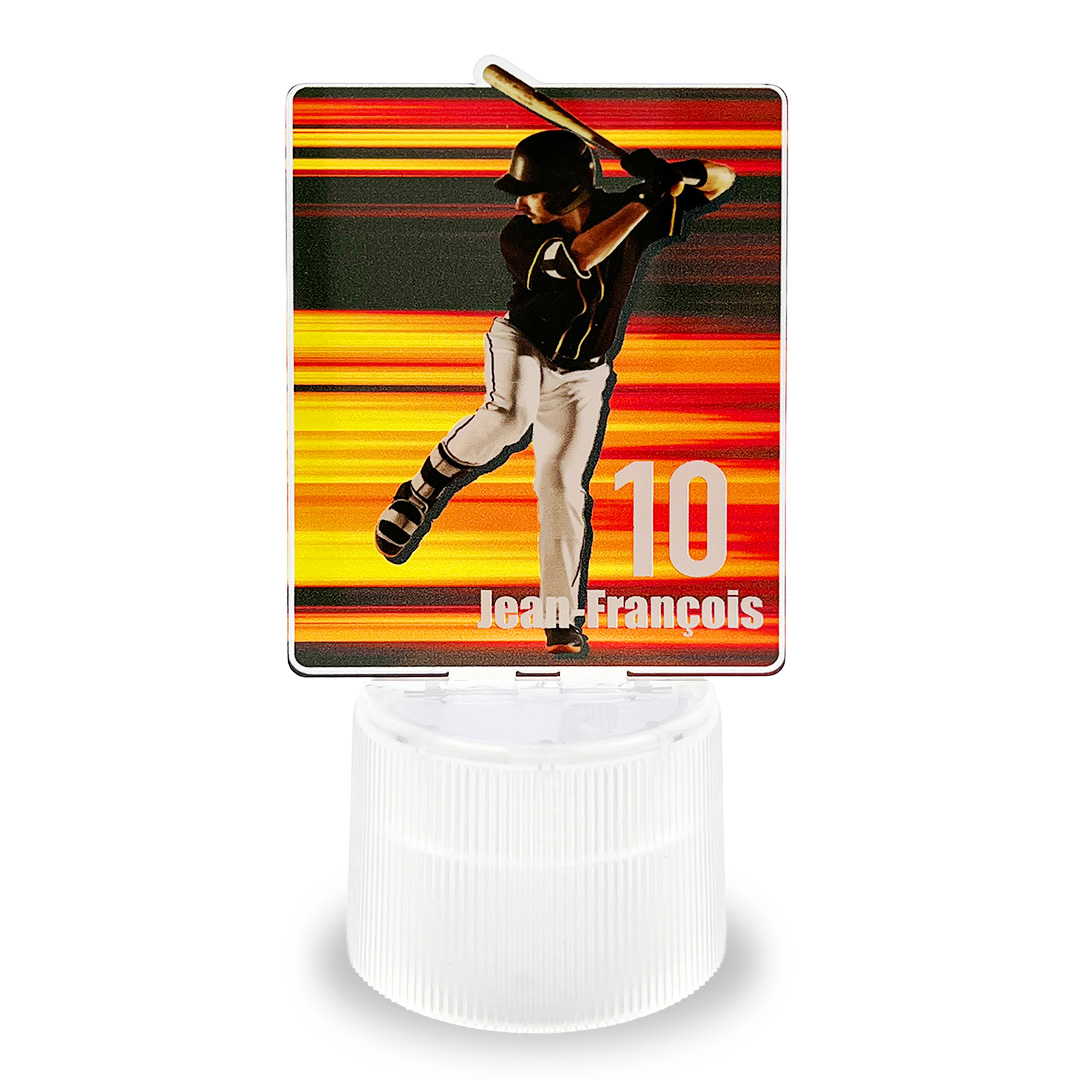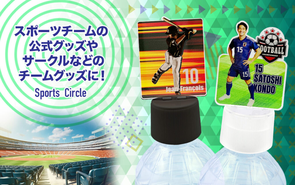 選手やマスコットのビジュアルをアクリルパーツで美しく再現し、ペットボトルのキャップに乗せるだけで手軽にスタンド化できる新感覚応援グッズです。