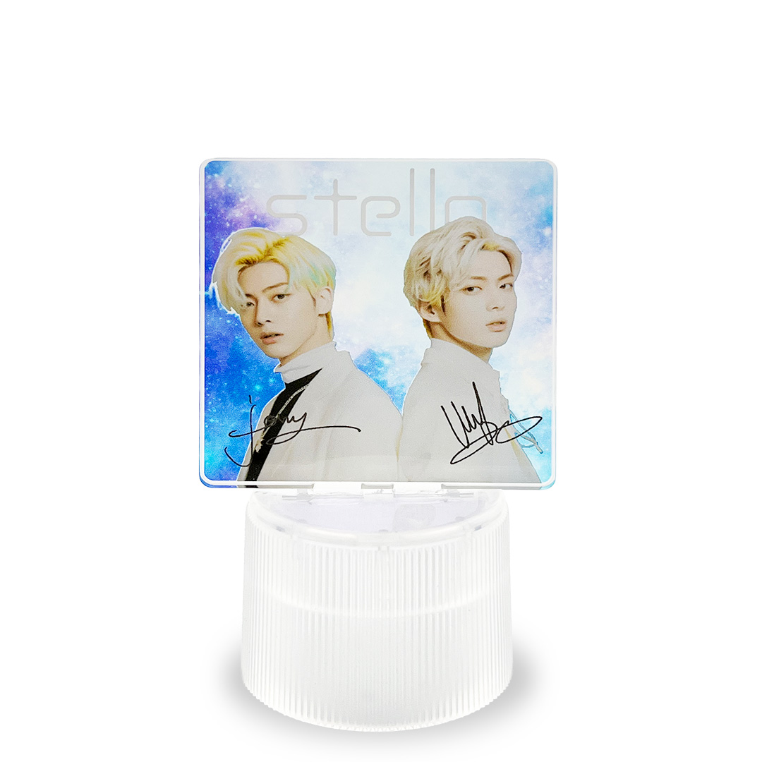 アクスタ本体をキャップに差し込むだけで、ペットボトルそのものをスタンド台座として使えます。もちろん、ボトルキャップアクスタだけでも飾ることができます。