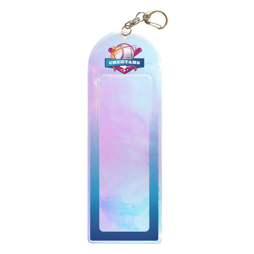 PVCオーロラ素材の輝きが写真やイラストを美しく引き立て、記念品としての満足度を自然と高めます。店舗オリジナルデザインや企業ロゴを組み込んだノベルティ、販促グッズとしても活用しやすく、持ち歩くことで継続的なPR効果が期待できるのも魅力。