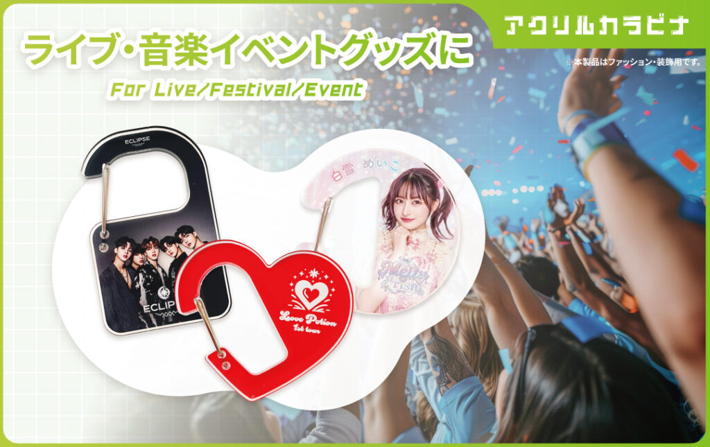 オリジナルアクリルカラビナは、ライブやコンサートのオフィシャルグッズとしても注目度の高い人気アイテムです。