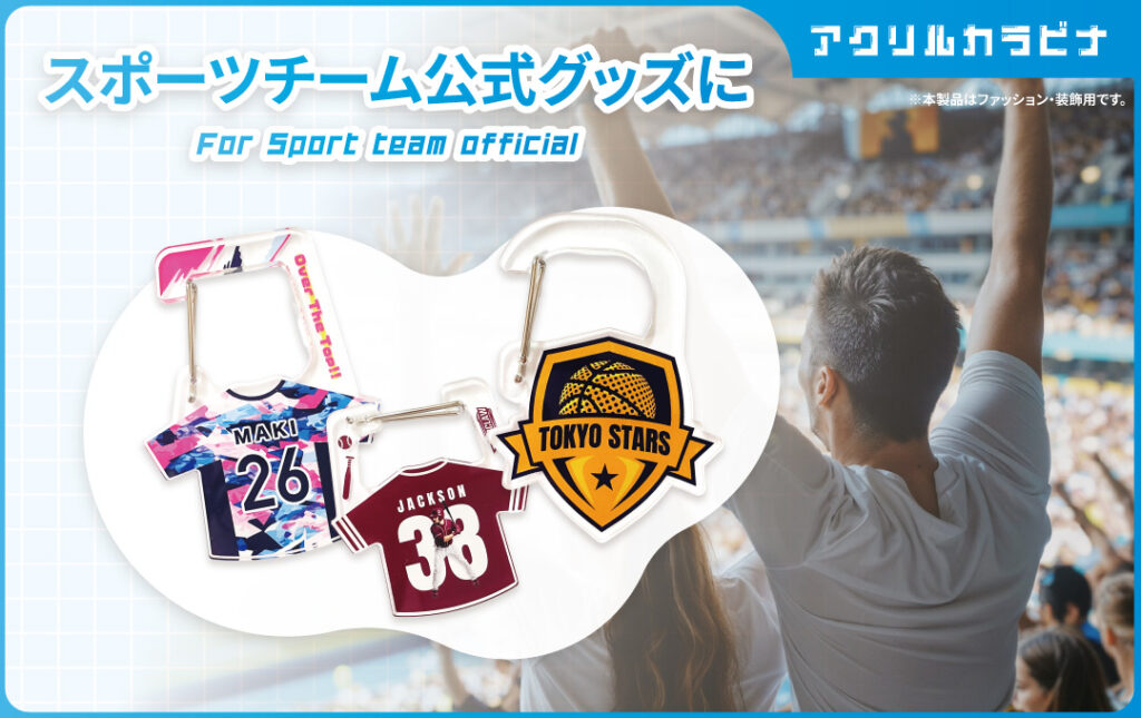 オリジナルアクリルカラビナは、スポーツチーム公式の応援グッズやファンクラブグッズとしても最適なアイテムです。
