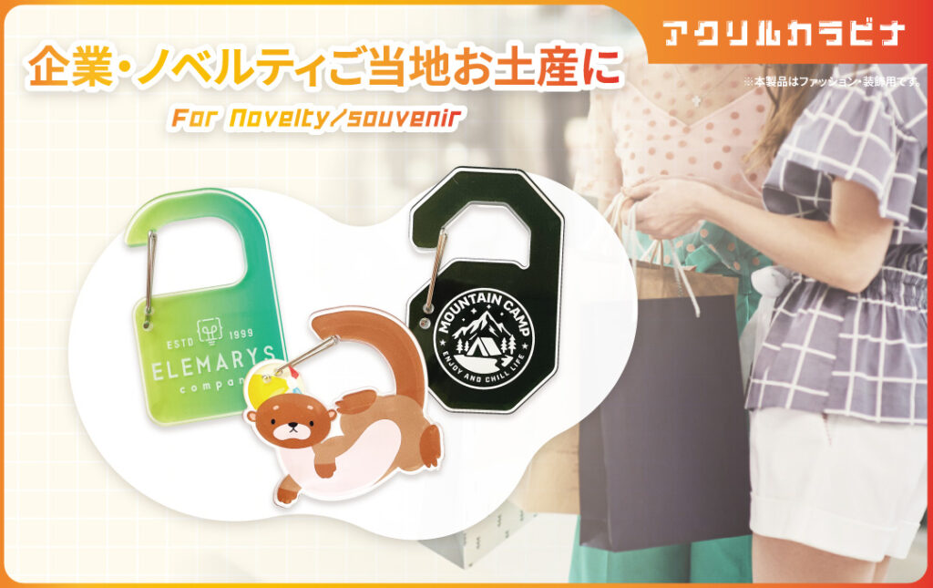 オリジナルアクリルカラビナは、お土産や記念品、ノベルティグッズとして最適な実用アイテムです。