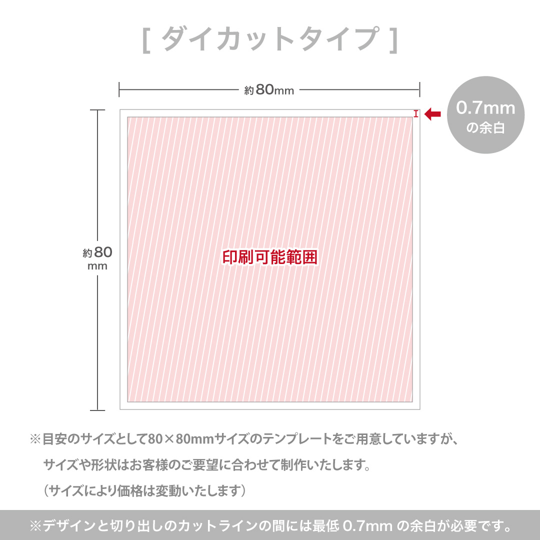 (ダイカットの場合、カットラインが非常に複雑なデザインは価格が変更となる場合がございます。)