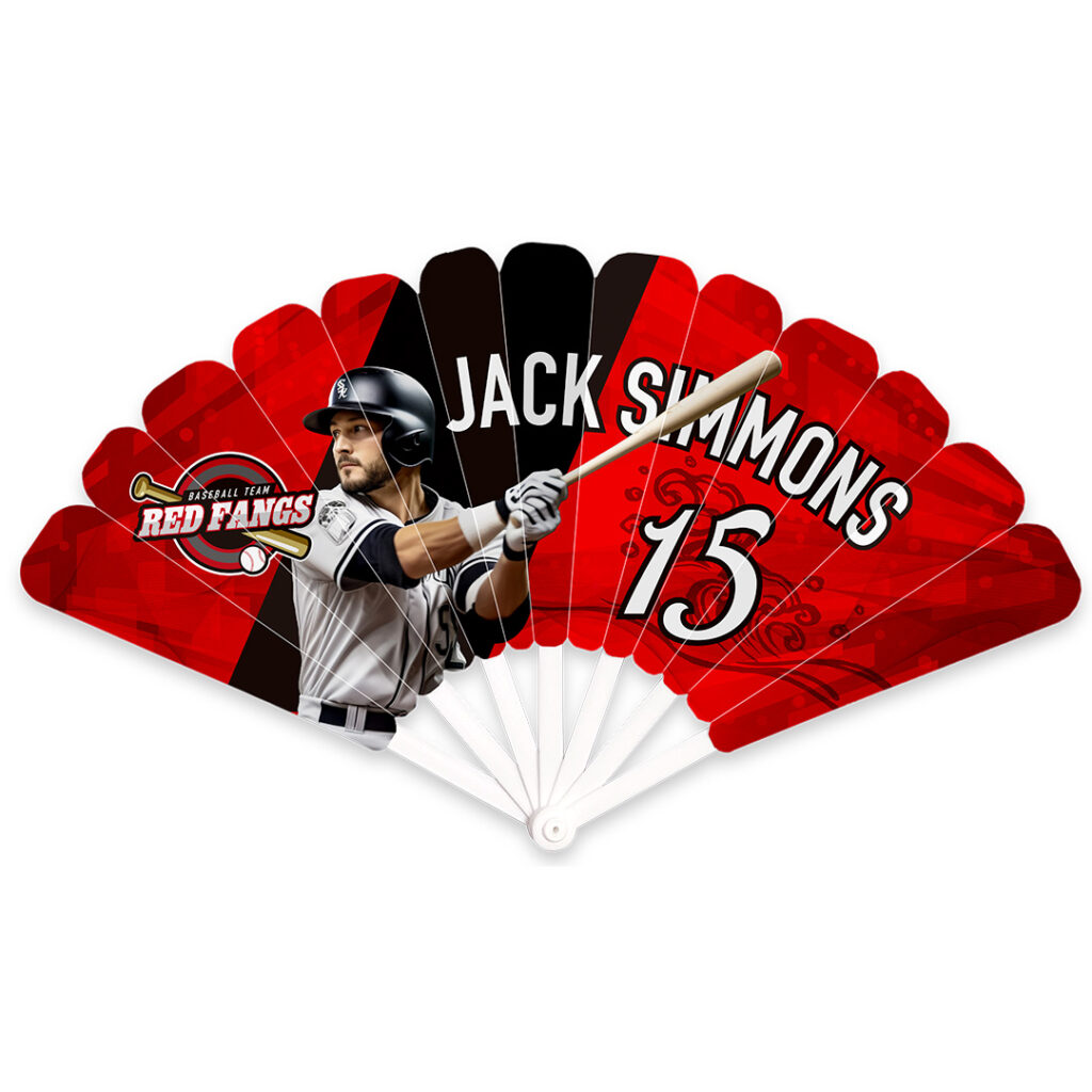 全面印刷が可能なオリジナル扇子には、選手の写真や背番号、チームロゴなどを大胆にデザインすることができ、応援席からもしっかり目立つインパクトのある応援グッズに。ファンにとっては応援に欠かせないアイテムになります。