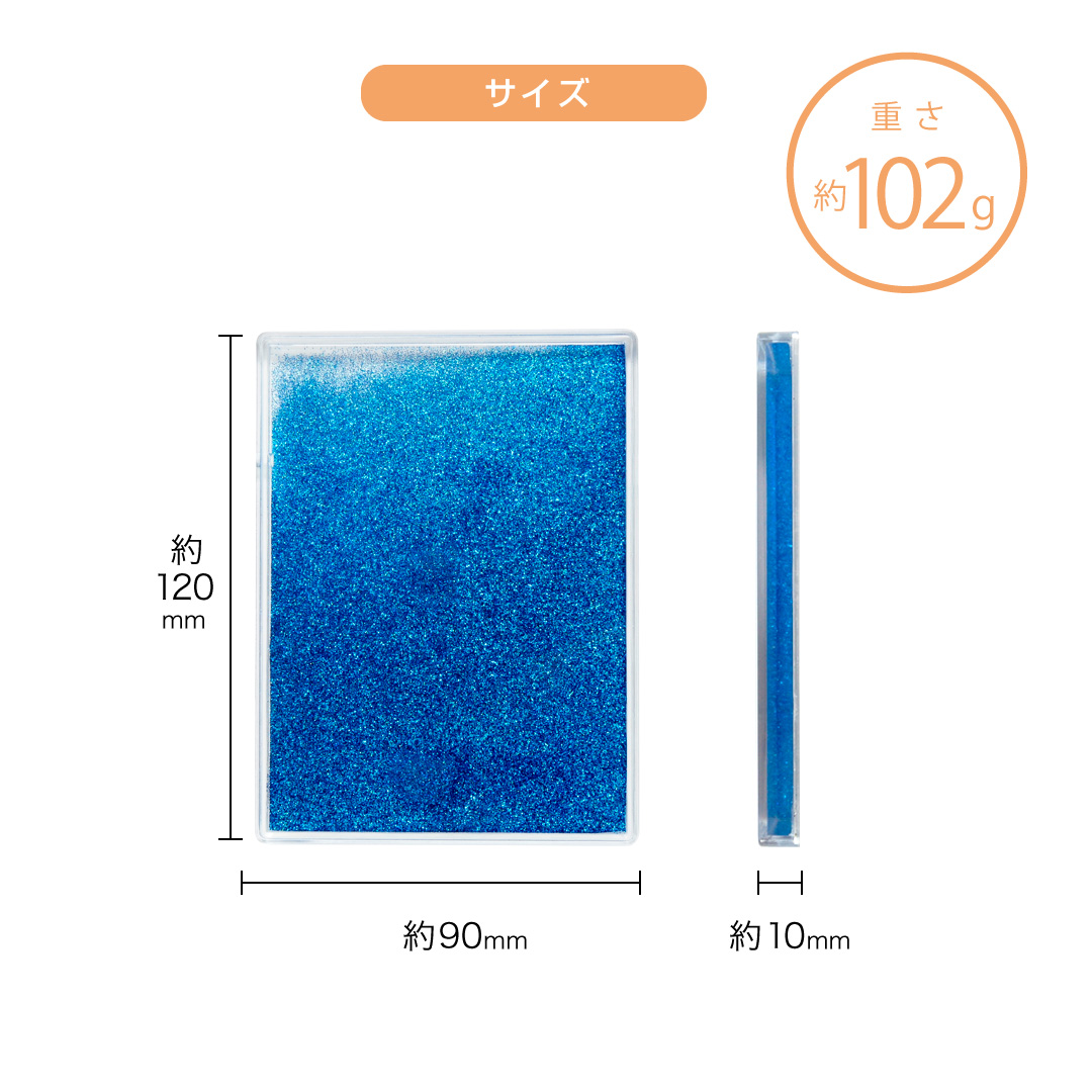 ブロック内部にはオイルとともにラメやフレークが封入され、揺れるたびに異なる表情を見せる幻想的なきらめきが楽しめます。高強度のポリカーボネート製ボディには、フルカラーで鮮やかにデザインを印刷可能で、長方形のブロックは縦・横どちらの向きでも自立するため、デスクや棚などに自由に飾っていただけます。
