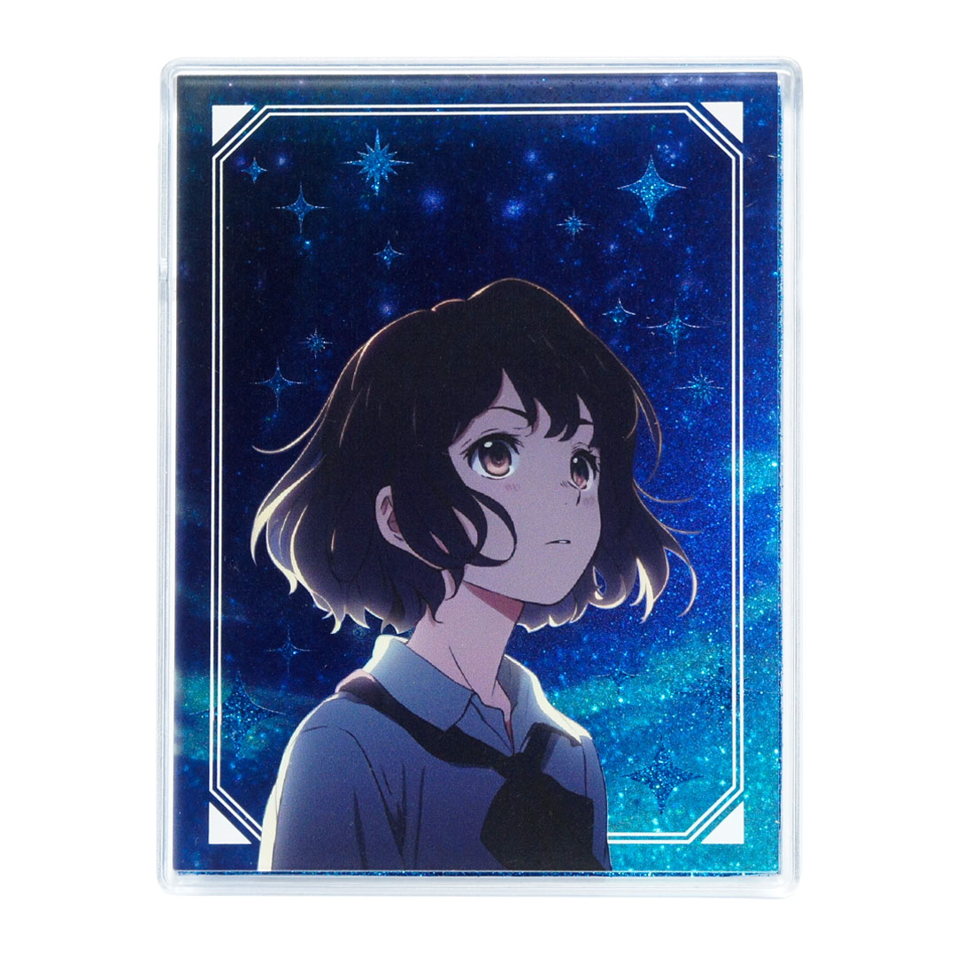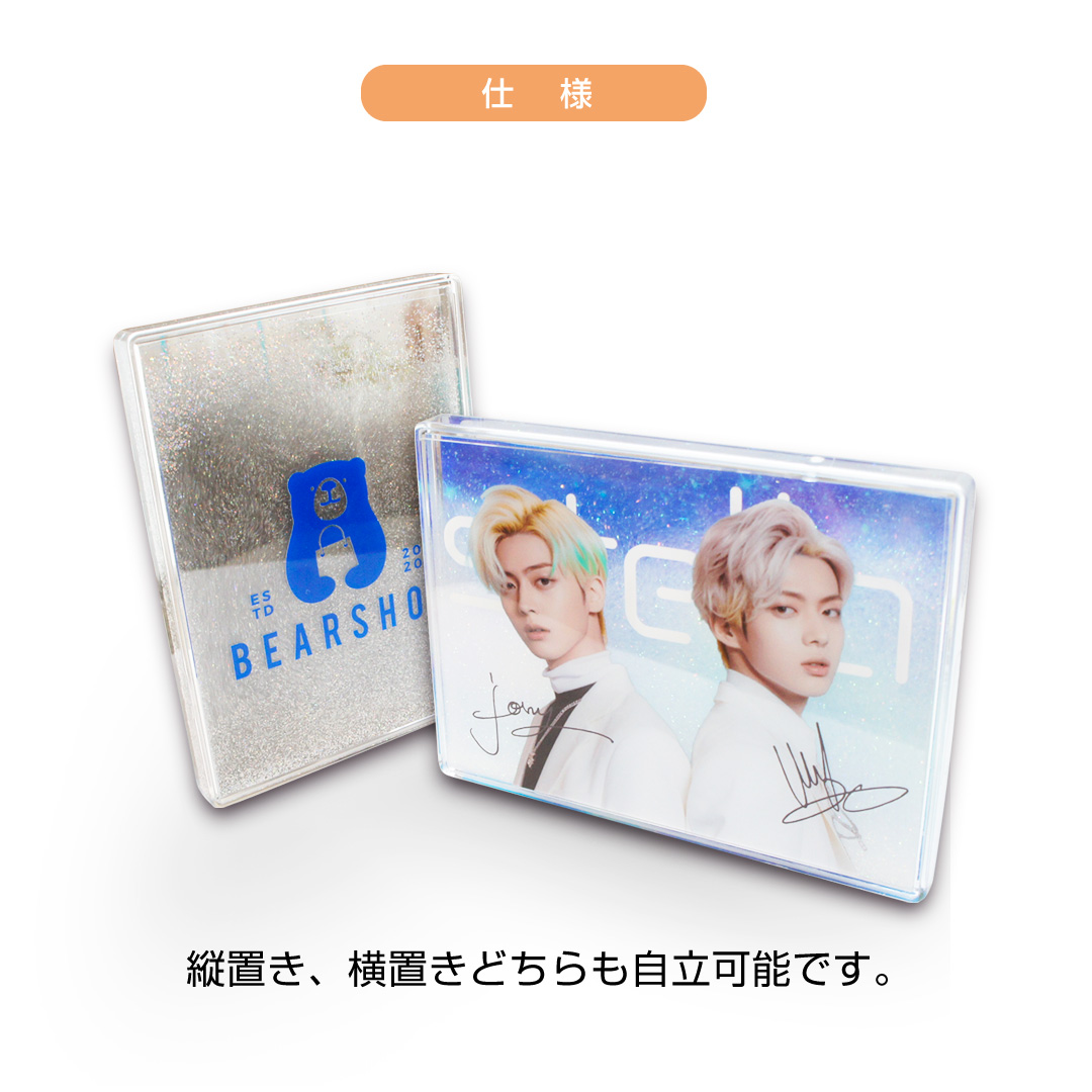 揺れるたびに輝くラメやフレークが、推しキャラやアーティストのビジュアルをより華やかに引き立てます。デスクや棚に飾れば、いつでも推しと一緒に過ごせる特別な空間に。光の当たり方や角度によって表情が変わるため、写真映えも抜群です。