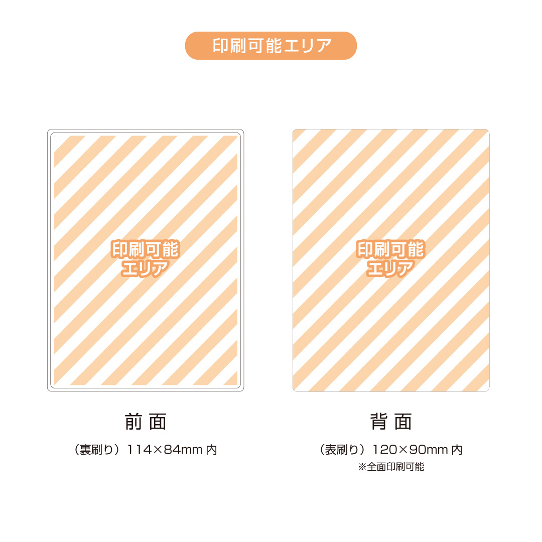 クリア素材ならではの透け感を活かすことで、洗練された印象に仕上がります。印刷は、表面側のみにデザインを施す「片面印刷」と、背面側にも背景などを加えられる「両面印刷」の2タイプに対応。どちらも奥行きや立体感を引き出し、デザインの魅力を最大限に表現します。
