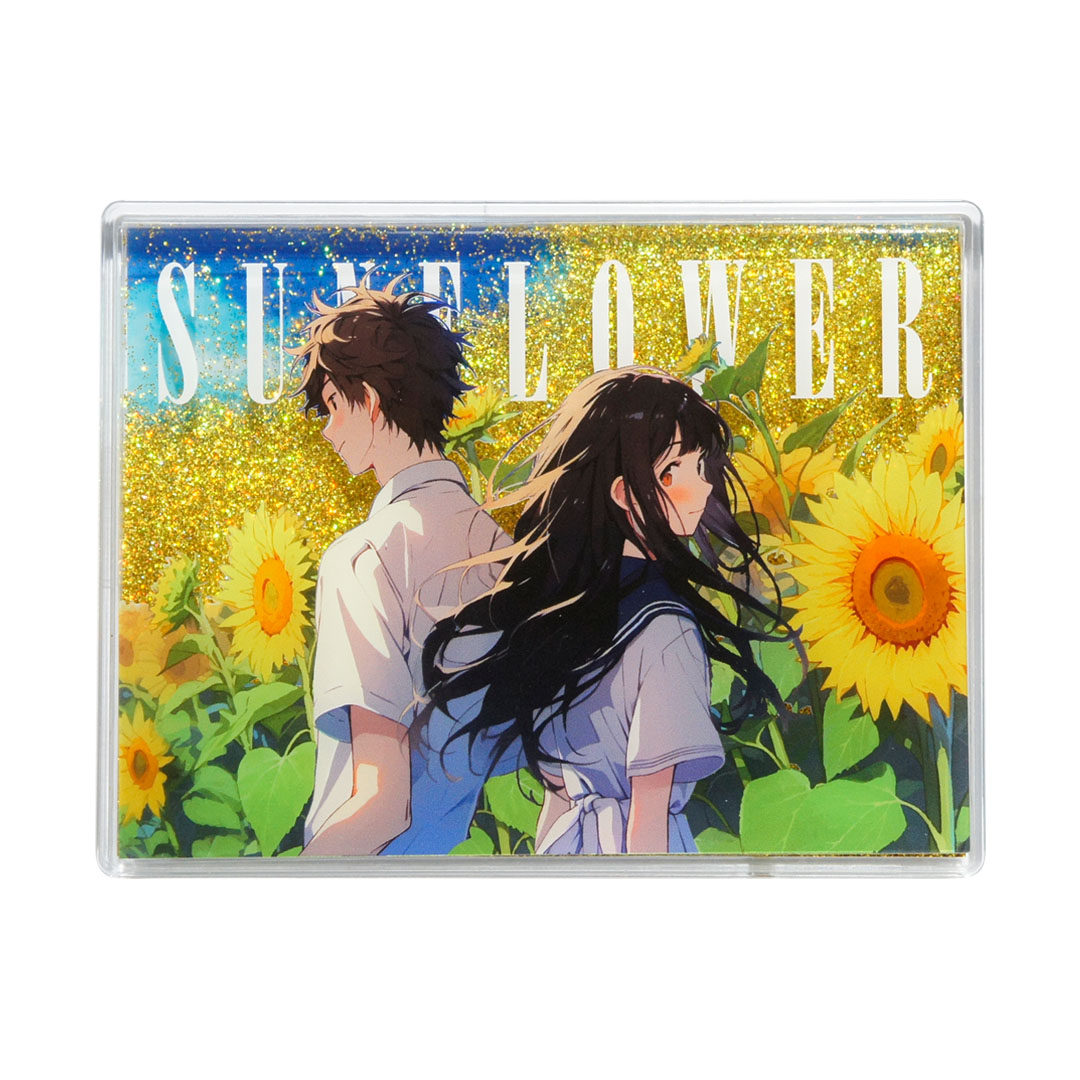 ゆらめくグリッターが光を受けてきらめく様子はまさに“動くアート”。写真や動画でも映えるため、SNSでの拡散力も抜群です。アイドルやアーティストの公式グッズはもちろん、ツアーやフェスなどイベント物販にも最適。推しをより華やかに引き立てる、存在感あふれるオリジナルグッズです。