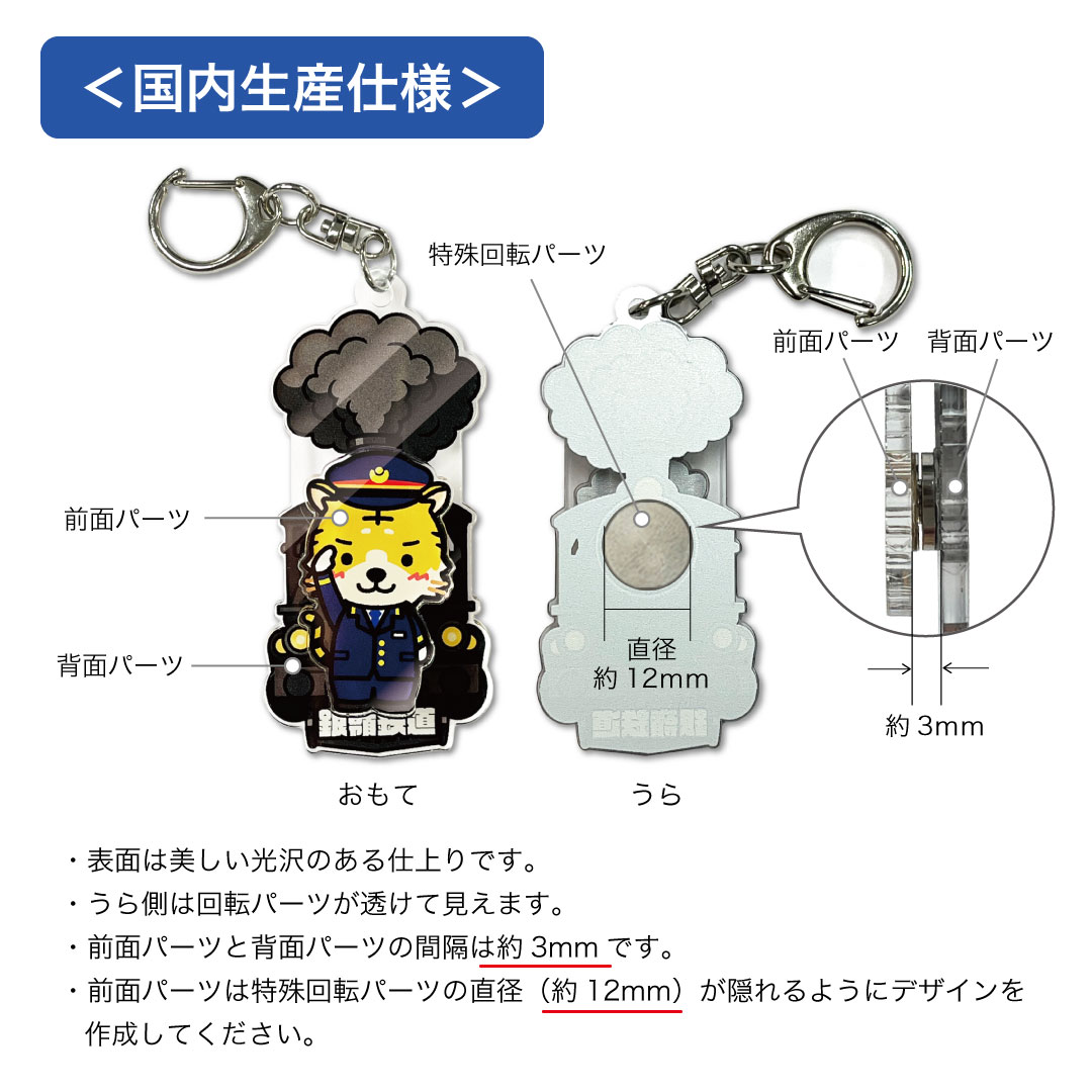 オリジナル くるくる 回転 アクリルキーホルダーは、観光地・ゆるキャラグッズに最適なオリジナルアイテム!