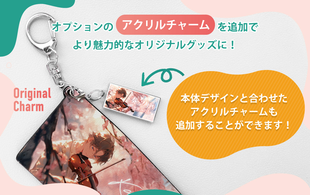 アクリルチャームをオプションで追加することができます。