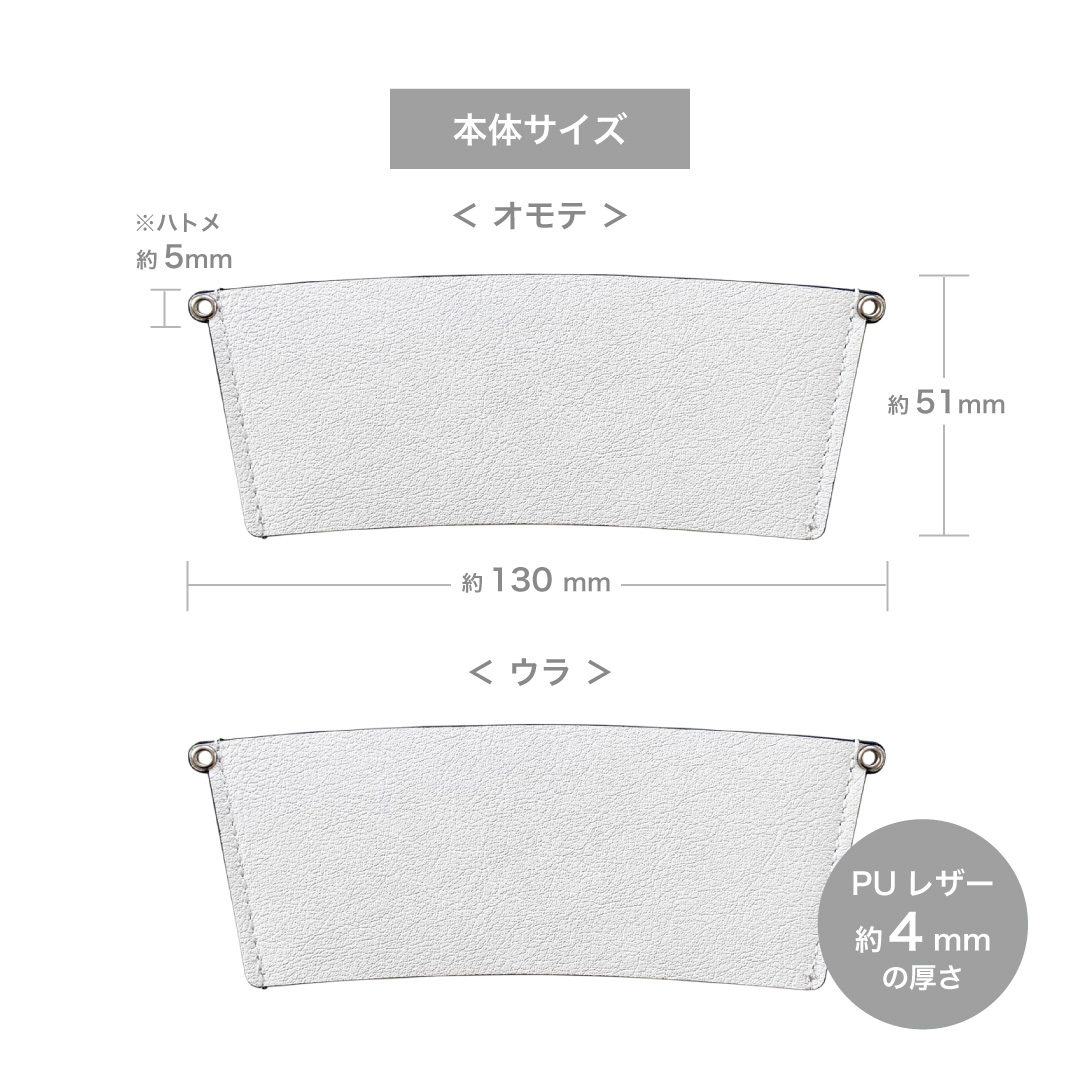 ホットドリンクの熱を軽減するため、熱々のカップも素手で持ちやすく、イベント会場やテイクアウトシーンでも活躍します。さらに、冷たいドリンクで気になる結露もPUレザー素材には付きにくく、手が濡れにくいのも魅力。季節を問わず年間を通して使える実用性の高さは、販売用グッズやノベルティとしても大きな強みです。