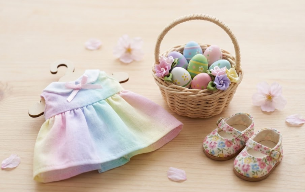 ポイントは、「やりすぎないこと」です。例えば、全身をパステルカラーにするのではなく、首元のリボンや手に持たせたイースターエッグに春色を取り入れる。こうした「さりげなさ」が、SNSで流れてきた時に「センスが良いな」と感じさせるポイントになります。