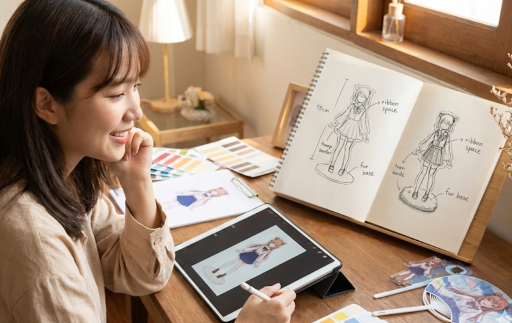 アクリルグッズを制作する場合、キャラクターの足元を少し浮かせるように配置して、台座部分にファーや造花を置くスペースを作るなどの工夫も有効です。将来的なデコレーションの可能性を考えながら入稿データを作成する時間は、DIYにおいて最もワクワクする瞬間の一つです。
