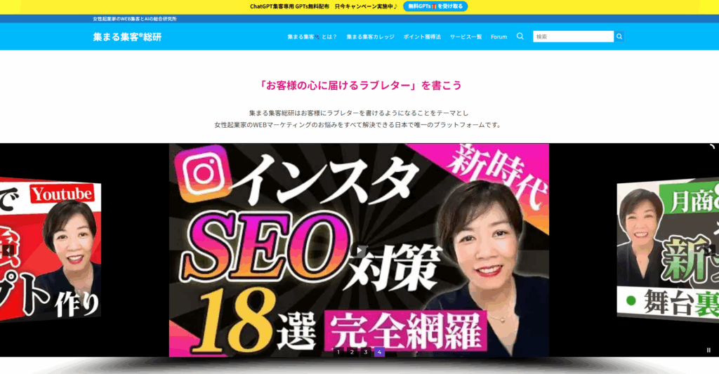 集まる集客®︎総研は、女性起業家の夢と挑戦をサポートするためのAIとWEB集客に特化した総合研究所です。