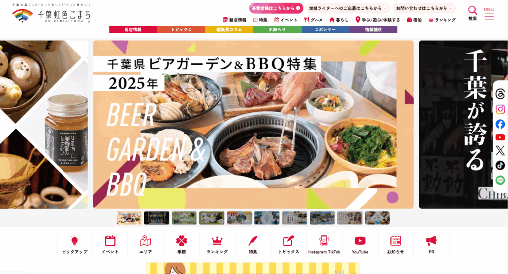 千葉虹色こまちは、千葉県に特化したおでかけ・観光情報メディアです。イベント、観光スポット、新店舗、グルメ、宿泊、体験学習など、多彩な地域情報を幅広く発信し、地元の魅力を再発見できる場を提供しています。